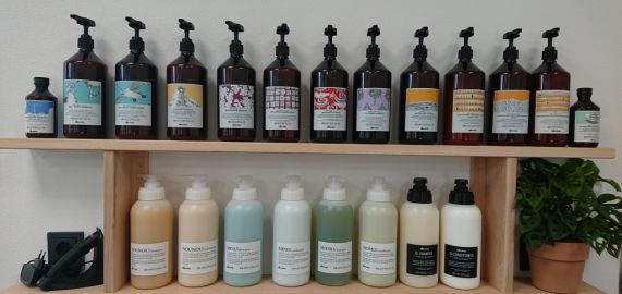 Im Friseurbereich arbeiten wir mit Produkten von Davines. Eine Haarpflegelinie mit pflanzlichen Wirkstoffen, die sich besonders durch hohe Hautverträglichkeit sowie brillante Farbtöne auszeichnet. Es wird außerdem auf Nachhaltigkeit geachtet.